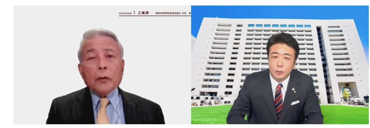 まず、FDC会長麻生泰が「新たな地域戦略のもと、福岡市長の強力なリーダーシップとFDCのポテンシャルという強みを活かしていかなければならない。本日視聴いただいている皆さんにはぜひFDCの地域戦略に参加していただきたいと思っている」と挨拶。