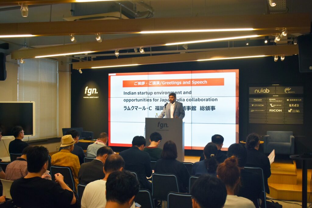 インド編では、ラムクマール・C 福岡インド総領事館 総領事 が投資環境や市場動向を講演。続いてTRTL Ventures Founding Partner 瀬尾 康浩 氏がインドVCの視点からインド現地のスタートアップ企業を交え事例紹介を行いました。