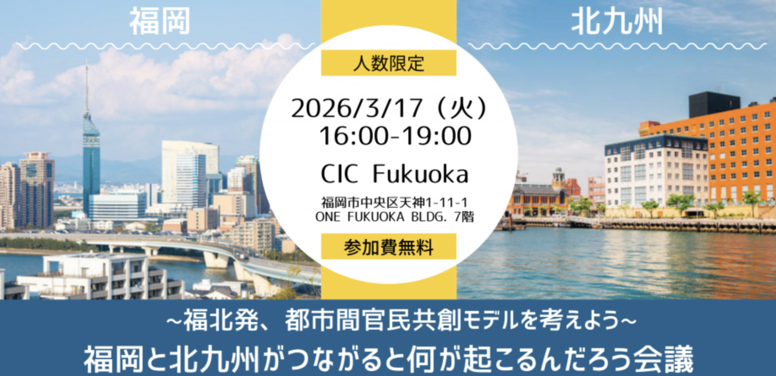 福岡地域戦略推進協議会(以下FDC)が協力するイベント「〜福北発、都市間官民共創モデルを考えよう〜 福岡と北九州がつながると何が起こるんだろう会議」が、2026 年3月17日(火)に開催されます。 ご関心のある皆様におかれましては、ぜひご参加ください。